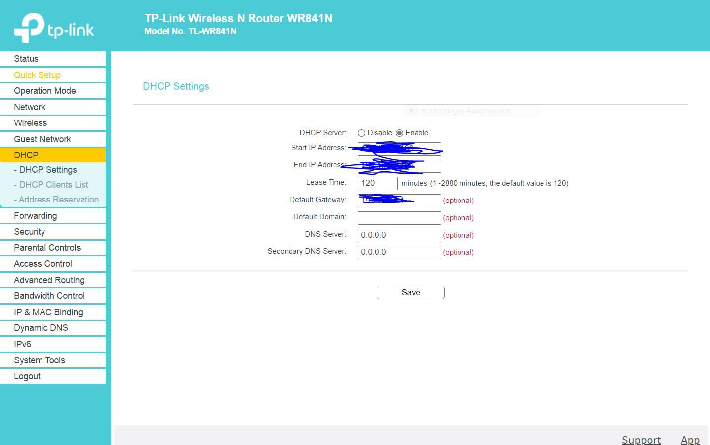*Gib bei DNS-Server die IP-Adressen 8.8.8.8, 8.8.4.4 ein (mit Komma).
