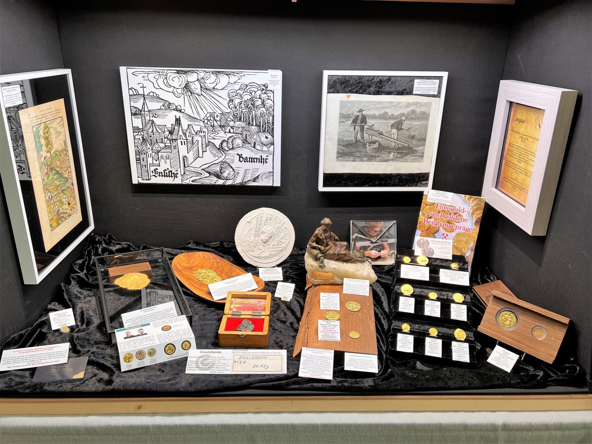 Im Rahmen der Münchner Mineralientage 2022 hatte ich die Gelegenheit, eine Sammlervitrine zum Thema „Meteorit von Ensisheim – Flussgold aus Ensisheim“ zu gestalten. Damit war der Schwerpunkt zum Meteorit von Ensisheim (gefallen am 7. November 1492) mit der 2022 entstandenen Medaille aus Ensisheimer Flussgold im Kern vorgegeben. Ein bergbauliches Thema, welches nicht nur das Rheingold aus dem französischen Elsass betrifft. Es ging auch um moderne Flussgoldmedaillen aus Elbegold, Edergold, Donaugold, Isargold, Maingold und aus dem Flussgold des Bayerischen Waldes. Ein unbekanntes und durchaus reizvolles Thema besonderer moderner Goldgepräge, welches im Rahmen der Münchner Mineralientage 2022 erstmals vorgestellt wurde und welches auf ein großes Interesse und eine gute Resonanz gestoßen ist (siehe Fotos mit dem Geschäftsführer Ch. Keilmann und der Deutschen Edelsteinkönigin). Leider zieht sich mein Buchthema „Kleinode aus den Flussablagerungen Deutschlands, mit den grenznahen Gebieten der Nachbarländer Österreichs, der Schweiz und Frankreichs“ noch etwas hin (siehe http://www.rauhgold.de). Da ich zusammen mit einem Freund alle Fotos mittels Stack-Fotografie erstelle bzw. erstellen möchte (derzeit sind es über 800 hochaufgelöste Bilder) und dieses Projekt daher noch etwas Zeit benötigt, mache ich gerne auf den soeben erschienenen Katalog „Flussgold- und goldene Bergbaugepräge“ von Lothar Schumacher aufmerksam. Zumal der Katalog in einer sehr kleinen Auflage erschienen ist und folglich bald vergriffen sein wird. Dieser Katalog gibt nicht nur einen exzellenten Überblick über die historischen Stücke, nein, der Katalog enthält auch alle modernen Gepräge aus Flussgold – einschließlich der teilweise extrem seltenen Proben. Falls jemand Interesse an solchen goldenen Erzeugnissen hat, dem sei dieser Katalog wärmstens ans Herz gelegt.
