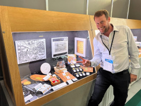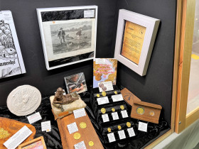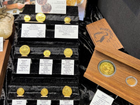 Im Rahmen der Münchner Mineralientage 2022 hatte ich die Gelegenheit, eine Sammlervitrine zum Thema „Meteorit von Ensisheim – Flussgold aus Ensisheim“ zu gestalten. Damit war der Schwerpunkt zum Meteorit von Ensisheim (gefallen am 7. November 1492) mit der 2022 entstandenen Medaille aus Ensisheimer Flussgold im Kern vorgegeben. Ein bergbauliches Thema, welches nicht nur das Rheingold aus dem französischen Elsass betrifft. Es ging auch um moderne Flussgoldmedaillen aus Elbegold, Edergold, Donaugold, Isargold, Maingold und aus dem Flussgold des Bayerischen Waldes. Ein unbekanntes und durchaus reizvolles Thema besonderer moderner Goldgepräge, welches im Rahmen der Münchner Mineralientage 2022 erstmals vorgestellt wurde und welches auf ein großes Interesse und eine gute Resonanz gestoßen ist (siehe Fotos mit dem Geschäftsführer Ch. Keilmann und der Deutschen Edelsteinkönigin). Leider zieht sich mein Buchthema „Kleinode aus den Flussablagerungen Deutschlands, mit den grenznahen Gebieten der Nachbarländer Österreichs, der Schweiz und Frankreichs“ noch etwas hin (siehe http://www.rauhgold.de). Da ich zusammen mit einem Freund alle Fotos mittels Stack-Fotografie erstelle bzw. erstellen möchte (derzeit sind es über 800 hochaufgelöste Bilder) und dieses Projekt daher noch etwas Zeit benötigt, mache ich gerne auf den soeben erschienenen Katalog „Flussgold- und goldene Bergbaugepräge“ von Lothar Schumacher aufmerksam. Zumal der Katalog in einer sehr kleinen Auflage erschienen ist und folglich bald vergriffen sein wird. Dieser Katalog gibt nicht nur einen exzellenten Überblick über die historischen Stücke, nein, der Katalog enthält auch alle modernen Gepräge aus Flussgold – einschließlich der teilweise extrem seltenen Proben. Falls jemand Interesse an solchen goldenen Erzeugnissen hat, dem sei dieser Katalog wärmstens ans Herz gelegt.