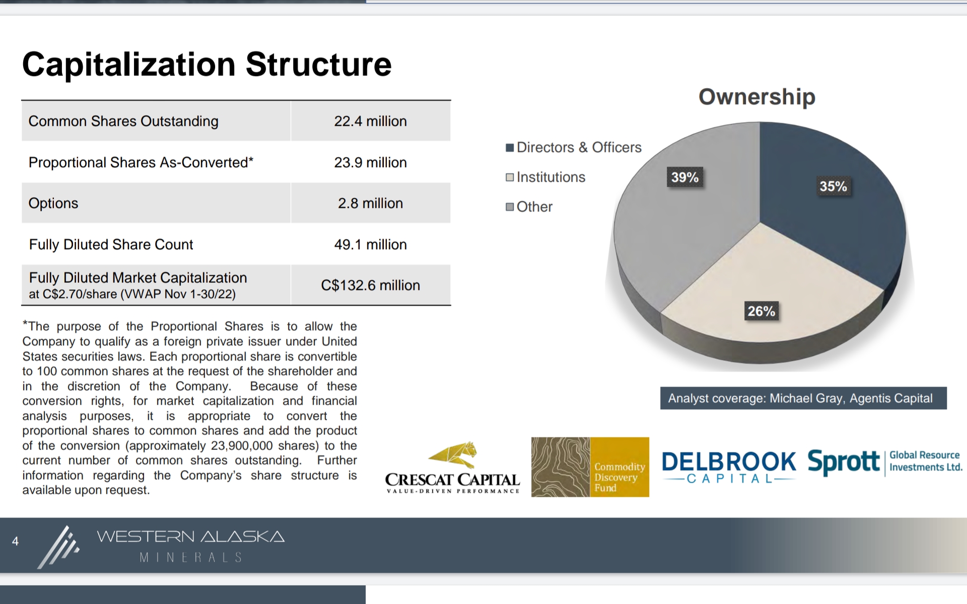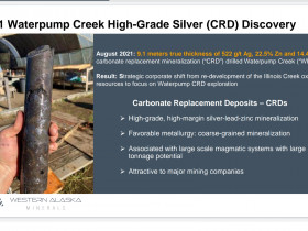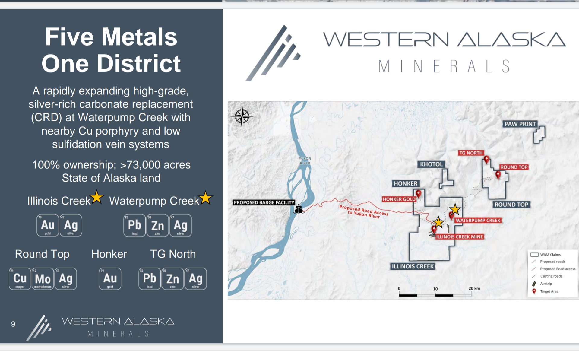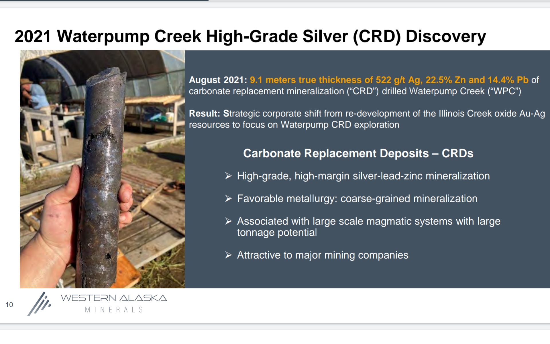 News zu Western Alaska Minerals wurden bisher schon ab und zu im Explorer-Faden geteilt. Da ich hier großes Potential sehe, ergibt ein eigenes Thema m.E. Sinn. WAM ist in erster Linie ein Silberexplorer. Man hat 5 Projekte, von denen die hochgradige Silberliegenschaft Waterpump Creek das Flaggschiff ist. Hier gibt es schon sehr gute BE (siehe Anhang). Die voll verwässerte Aktienanzahl liegt noch unter 50 Mio. Die aktuelle Markkapitalisierung beträgt 141 Mio. CAD. Es sind bekannte institutionelle Investoren mit im Boot und auch der Insideranteil ist sehr hoch. Die Präsentation ist ganz aktuell.