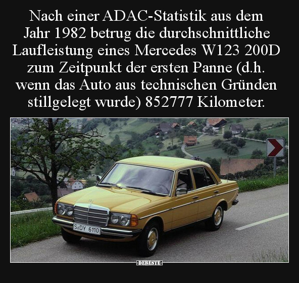 Der 123 war als 240 D der letzte meiner Reihe von 220 D und 240 D. Etwa 1 Mio km zusammen in 21 Jahren ohne geringste Probleme.