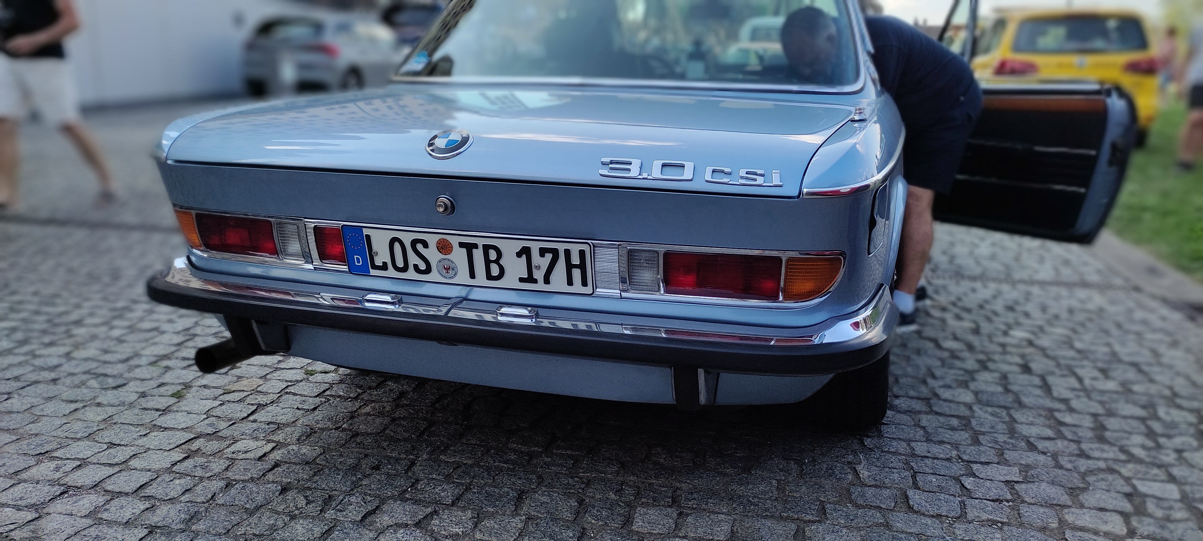 Es ging mir weniger um den bekannten Jaguar E- Type von Louis, sondern um dieses wunderschöne blaue Cabriolet des italienischen Managers...