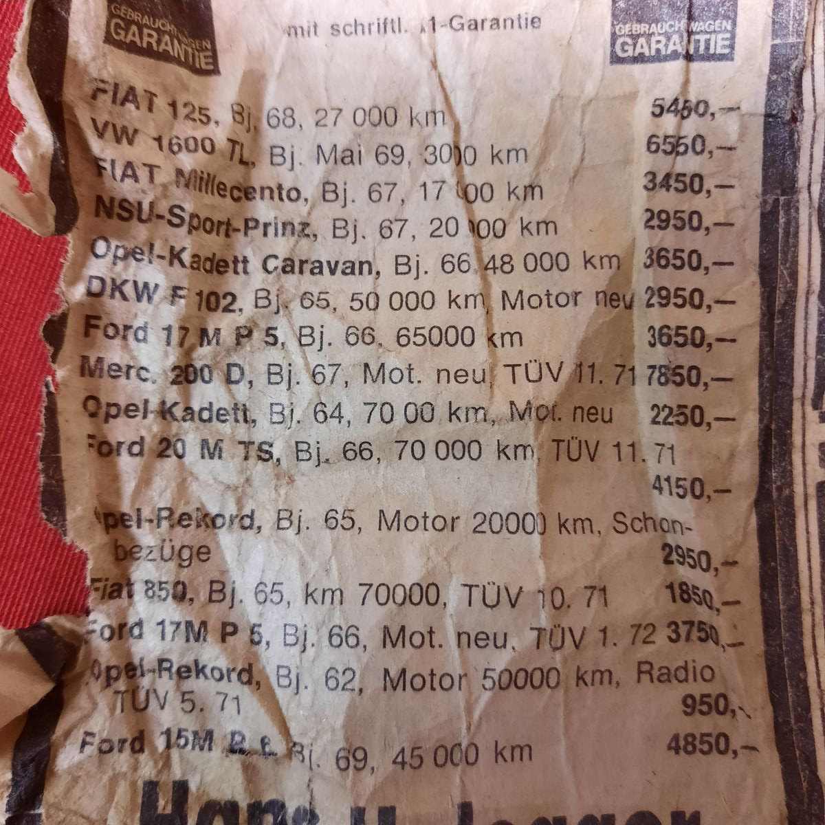 • So einen 15Meter Ford wie auf dem Bild hatte ich auchmal, für 300 Mark vom Türken gekauft schön viel Platz und auf dem Dach konnte man viel transportieren mit über eineinhalb Jahren TüV immer mal was defekt hatte das Licht dann mit Kabeln überbrueckt