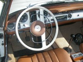 Dieser alte Pagode hatte auch keine Servolenkung, dafür aber ein großes Lenkrad.
