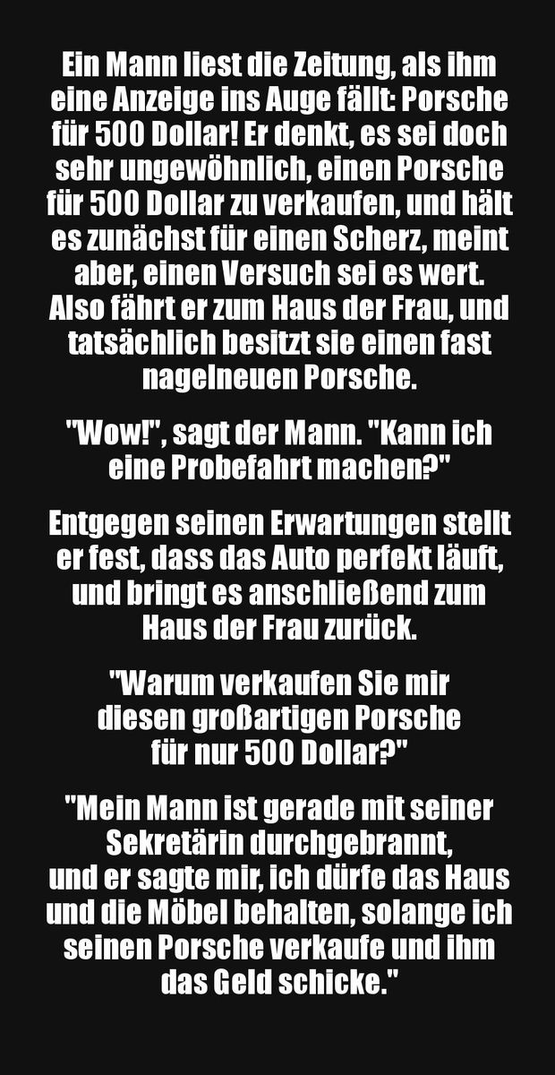 …. Ich brauche auch keinen Porsche zum Brot kaufen fahren…