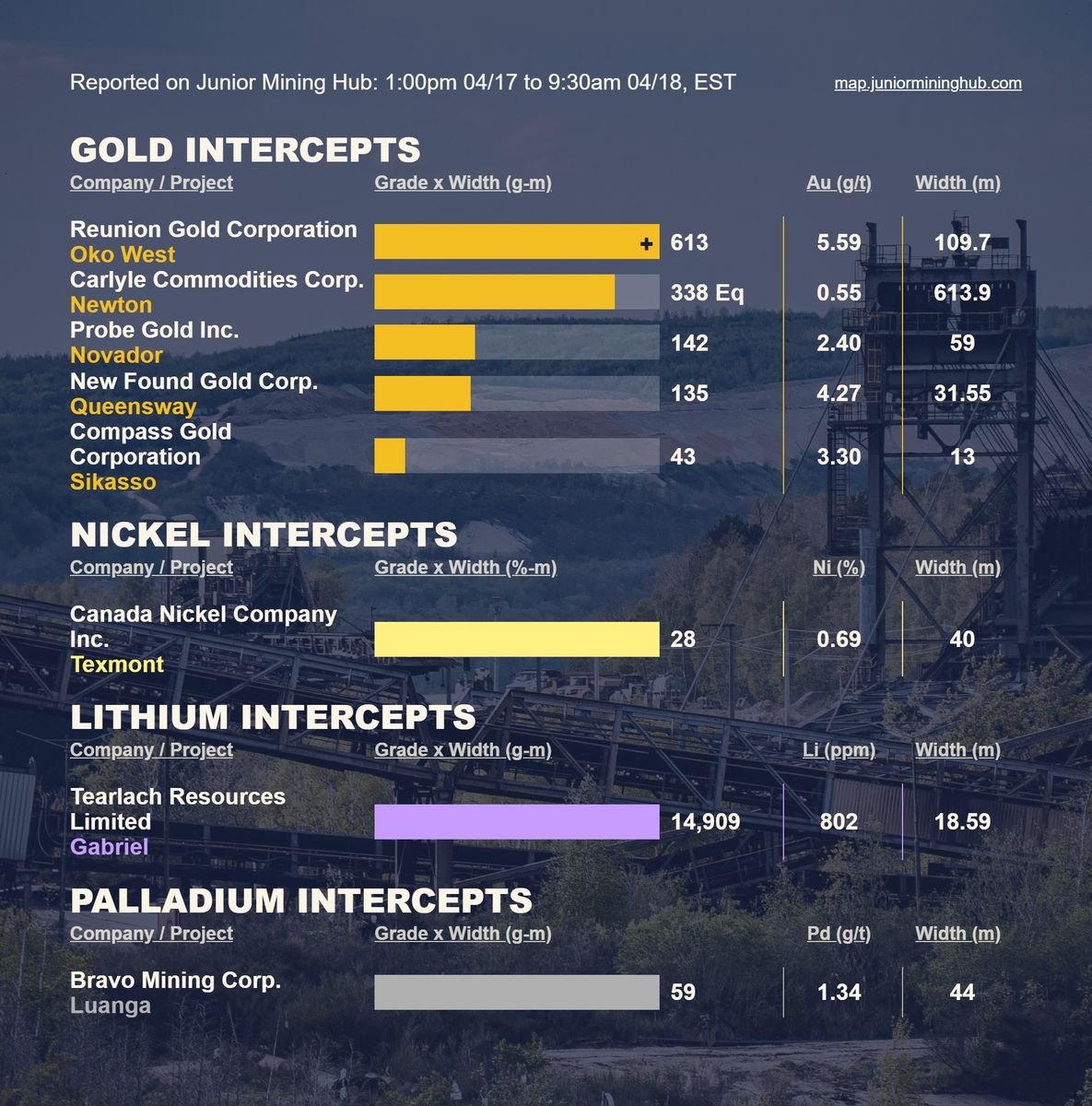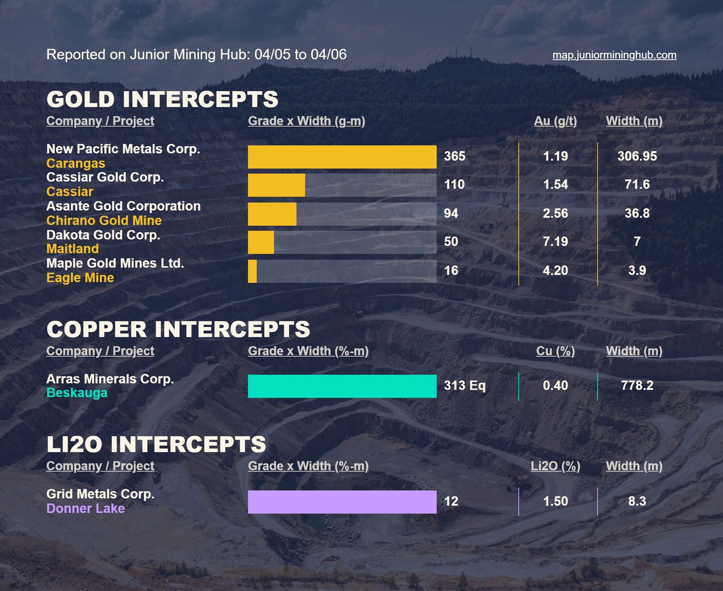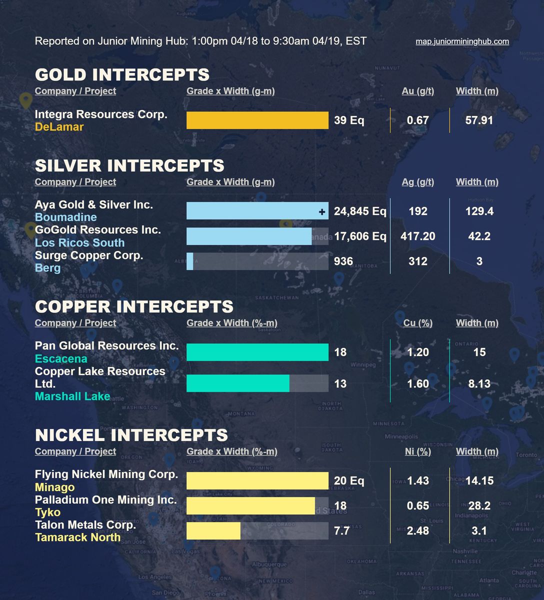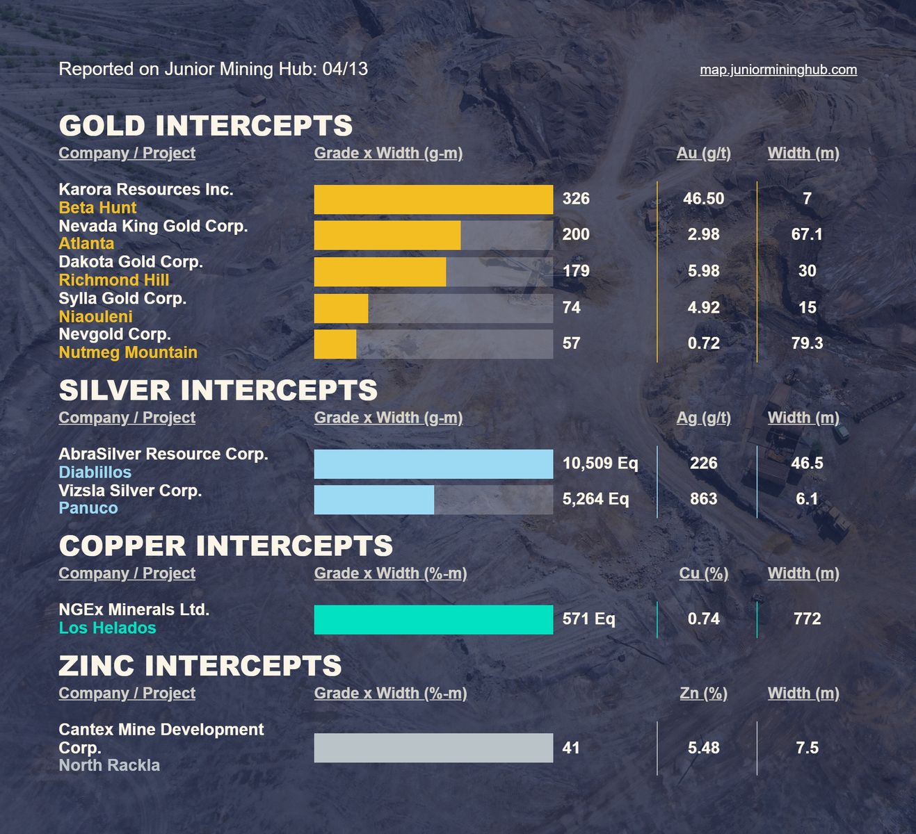 Aktuelle Bohrergebnisse (Au, Ag, Cu und andere Metalle)