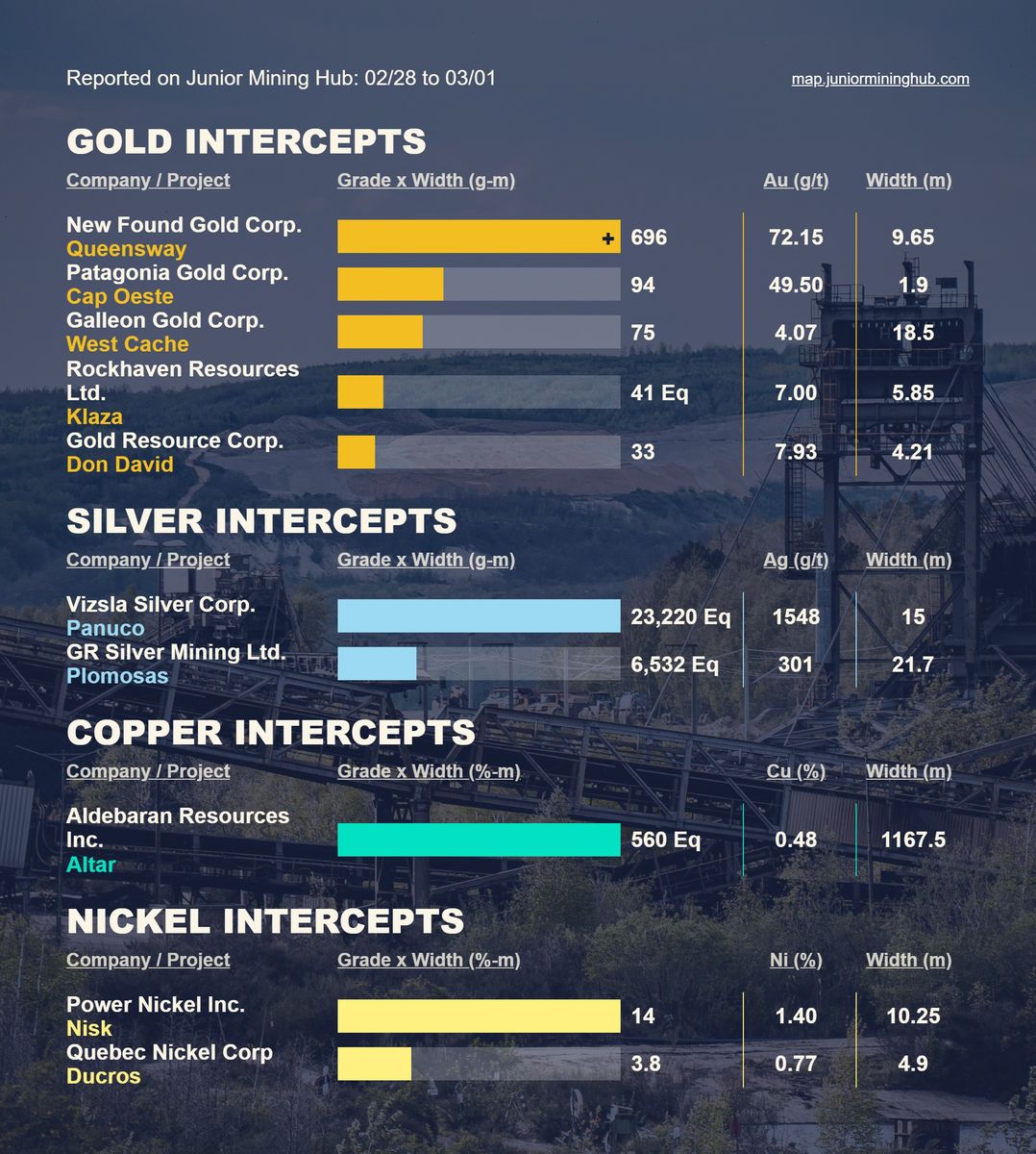 Aktuelle Bohrergebnisse (Au, Ag, Cu und andere Metalle)