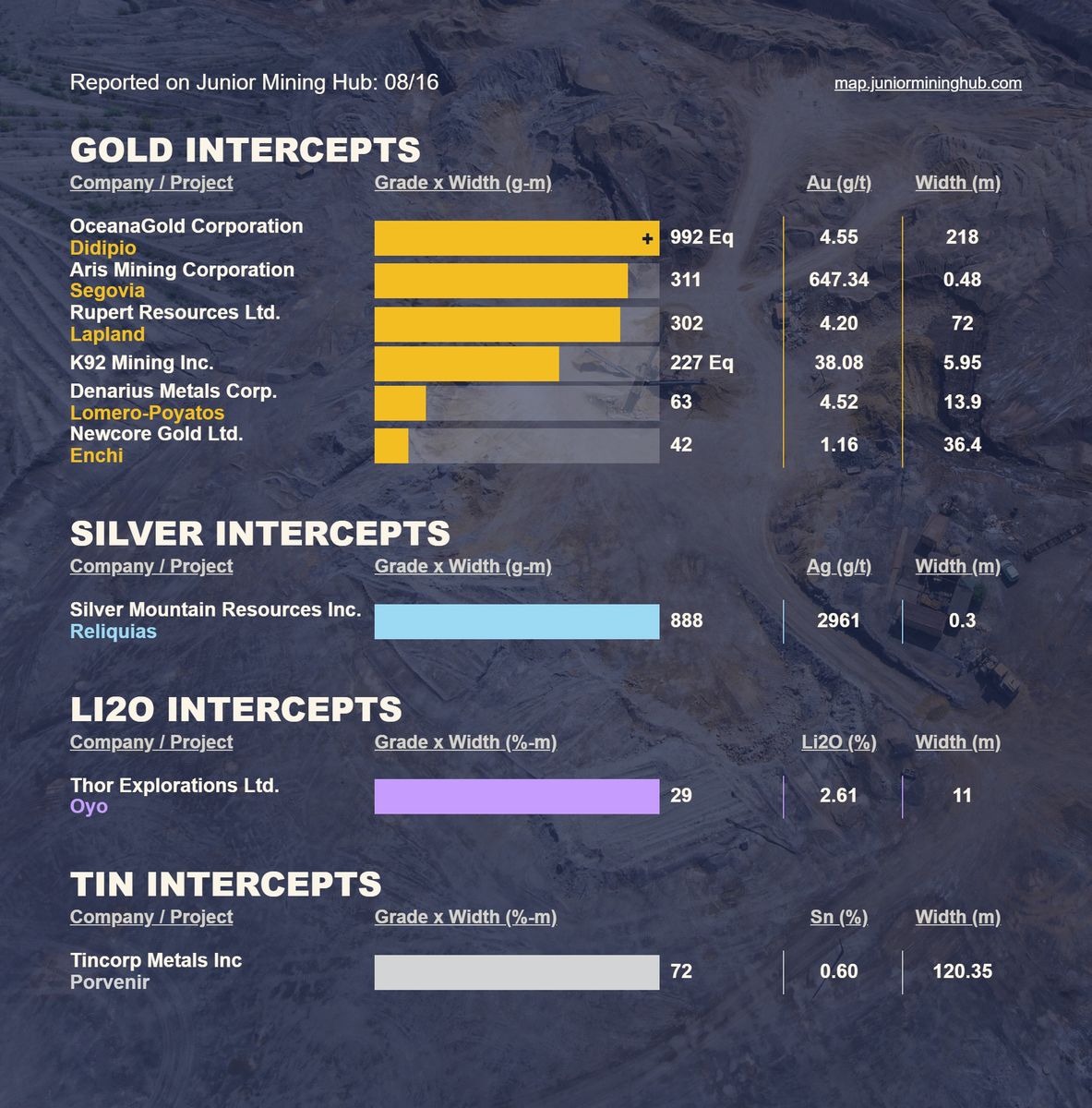 Aktuelle Bohrergebnisse (Au, Ag, Cu und andere Metalle)