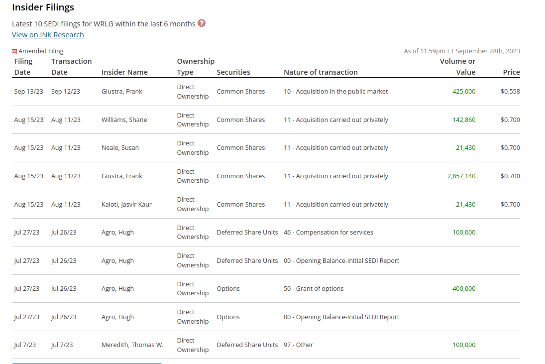 • WRLGF's Director Duncan Middlemiss is the former president and CEO of a gold producer that went from a market cap of $73M to $2.3B in a span of just nine years. That's truly spectacular (3,100%)!