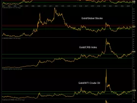 Wie Sie sehen können, erreichte das HUI/Gold-Ratio im Jahr 2003 einen Höchststand und befindet sich seitdem auf einem flachen Abwärtstrend. Ich persönlich glaube, dass es Anfang dieses Jahres einen doppelten Boden gebildet hat. Ich glaube das nicht, weil ich es will (auch wenn ich es will). Ich glaube es aufgrund der makroökonomischen Entwicklungen, die derzeit im Gange sind....