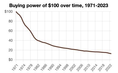 Warum erklärt und zeigt er nicht zugleich den kolossalen Werteverlust des Papierdollar von 98 % seit 1917 oder so?