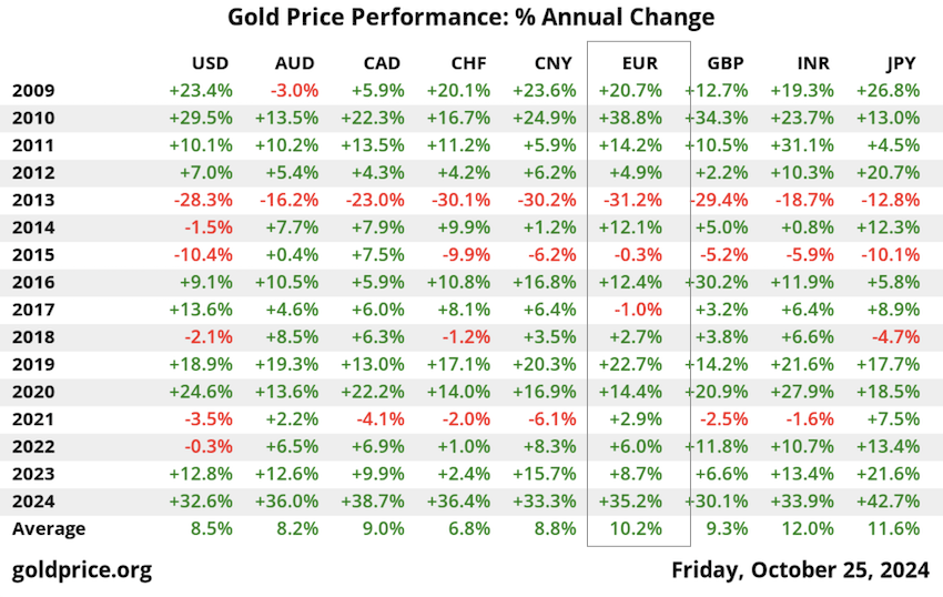 Gold in 2024 bei ca. 2.500 €