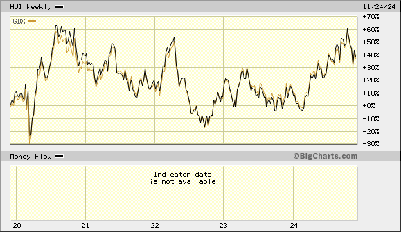 Minute 11:30 - Warum ist der HUI schwächer als das GDX/GLD Ratio? - Danke.