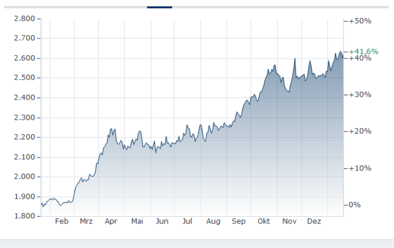 Die 2.800er Marke ist aktuell 1,65% entfernt - und die 3.000er ist 8,9% entfernt.