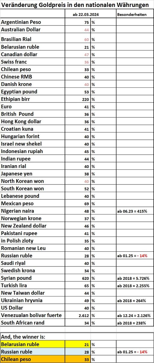 alle anderen Währungen haben sich gegen Gold verschlechtert.