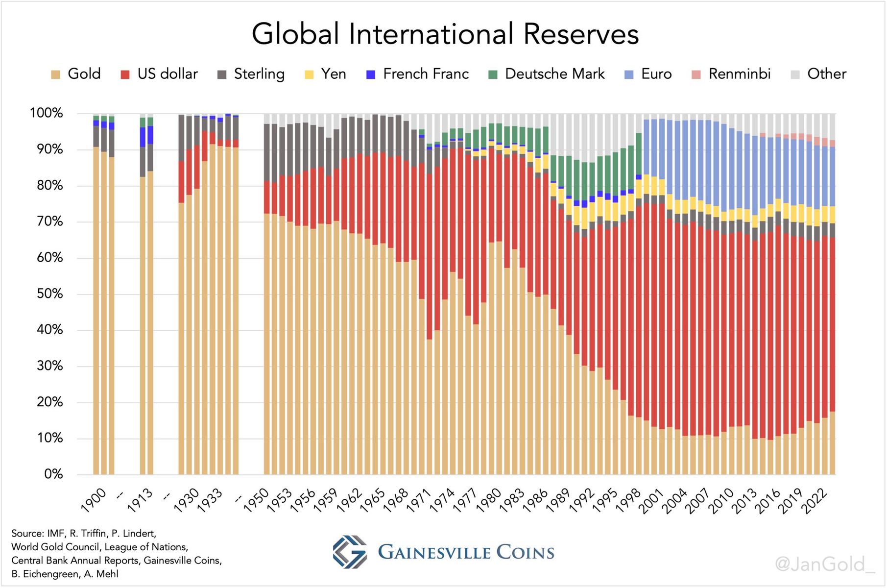 und die Zentralbanken haben noch Luft nach oben, was Goldreserven angeht: