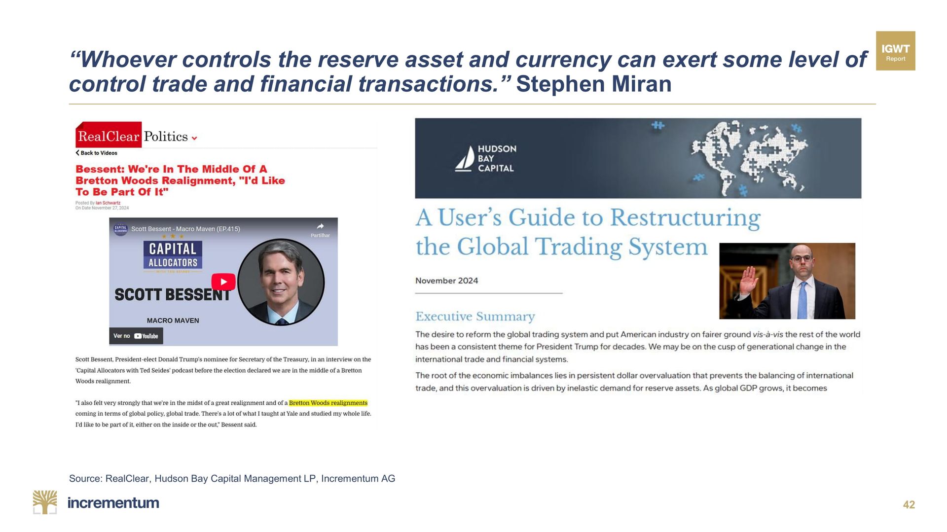 das wäre dann die beste Version für/nach der preisl. Neubewertung der Goldbestände um sich einen Vorteil im (weiteren) Handels- u. Wirtschaftskrieg zu verschaffen, dass die Neubewertung kommt ist für mich klar, nur Zeitpunkt noch nicht, ich tippe mal vorsichtig auf laufende Amtsperiode v. DT, sicher dann in seiner 3.^^