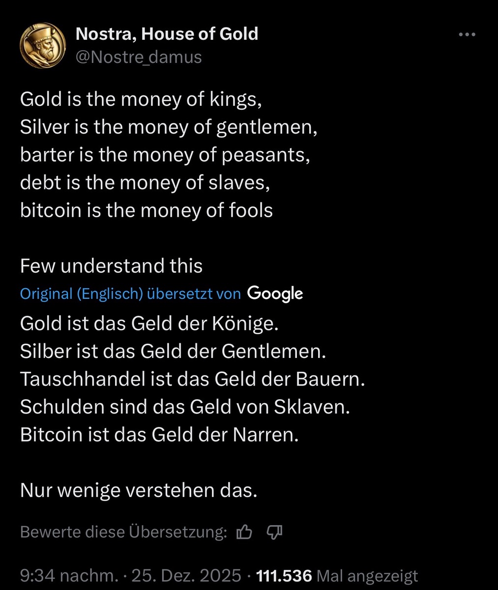 Giorgetti dementierte letzte Woche jegliche Pläne, das Gold aus der Bilanz der italienischen Zentralbank zu entfernen, was ein Umgehen des Verbots der Finanzierung des öffentlichen Sektors durch Zentralbanken bedeuten würde.