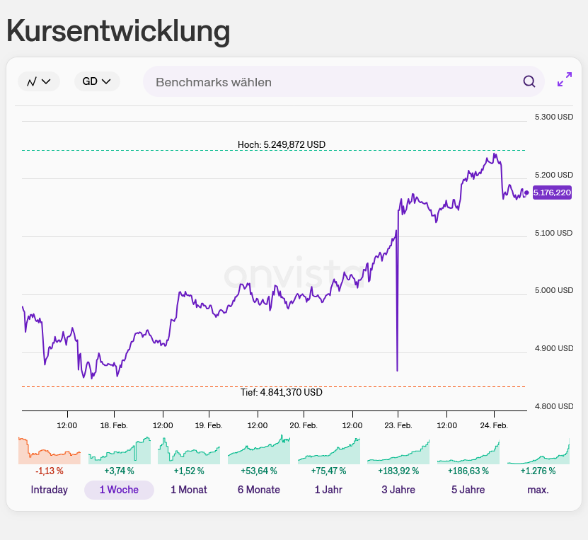 • "Pinning"-Effekt: Der Preis wird oft in Richtung eines "Max Pain"-Levels gezogen – das ist der Kurs, bei dem die meisten Optionen wertlos verfallen. Angesichts der jüngsten Korrektur könnten viele Call-Optionen (Wetten auf steigende Kurse) bei hohen Basispreisen (z. B. 5.300 $oder 5.500$) nun wertlos verfallen, was den Druck nach oben begrenzt.