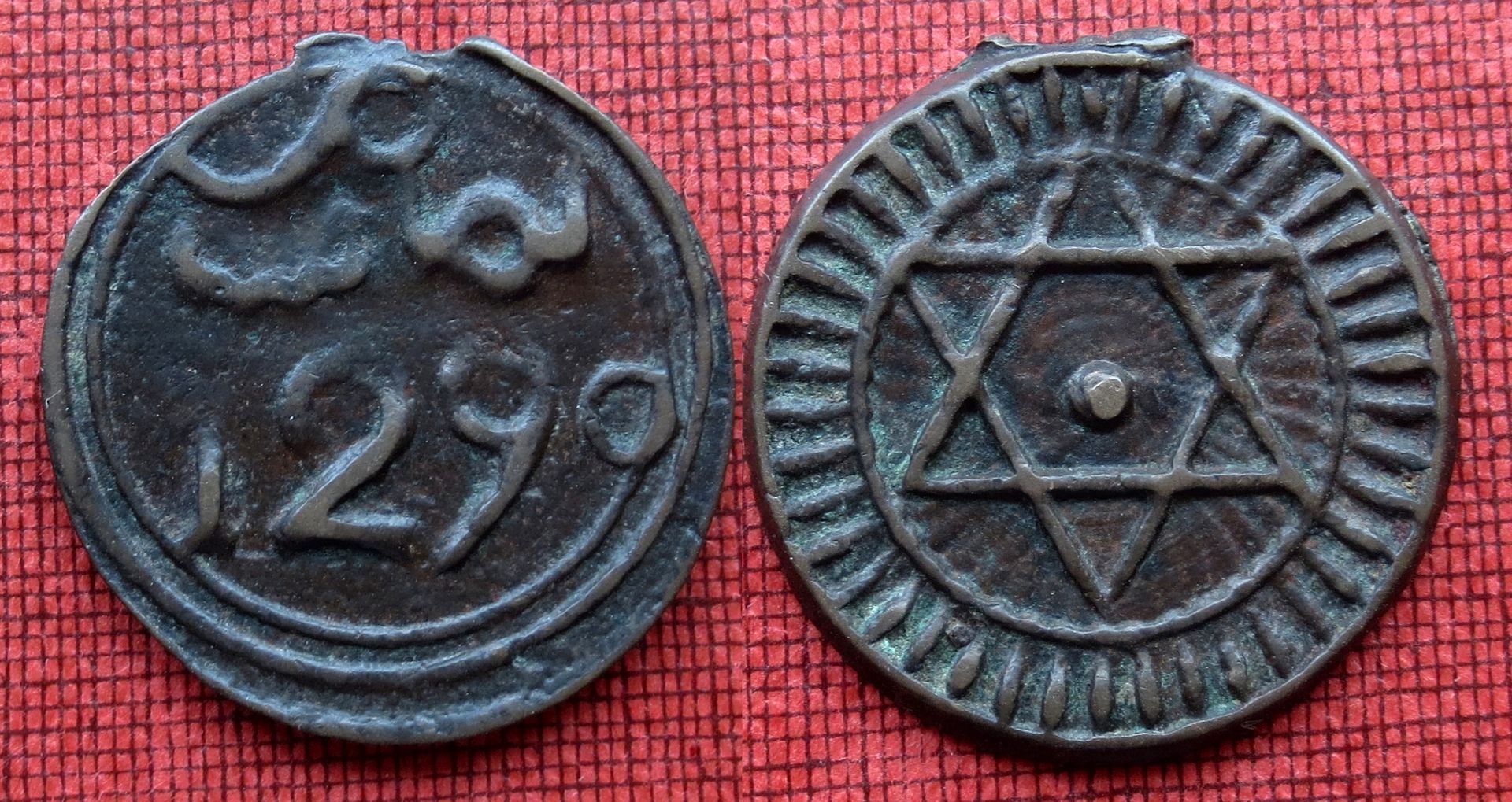 Zu den Fotos: die drei mit dem Taschentuch als Hintergrund sind bei gutem Tageslicht schräg aufgenommen worden. Sie zeigen alles, so wie es unter der Lupe im ungünstigsten Fall zu sehen ist. Unter anderen Lichtverhältnissen und mit bloßem Auge betrachtet sieht die Münze viel besser aus. Siehe Ausschnitt.