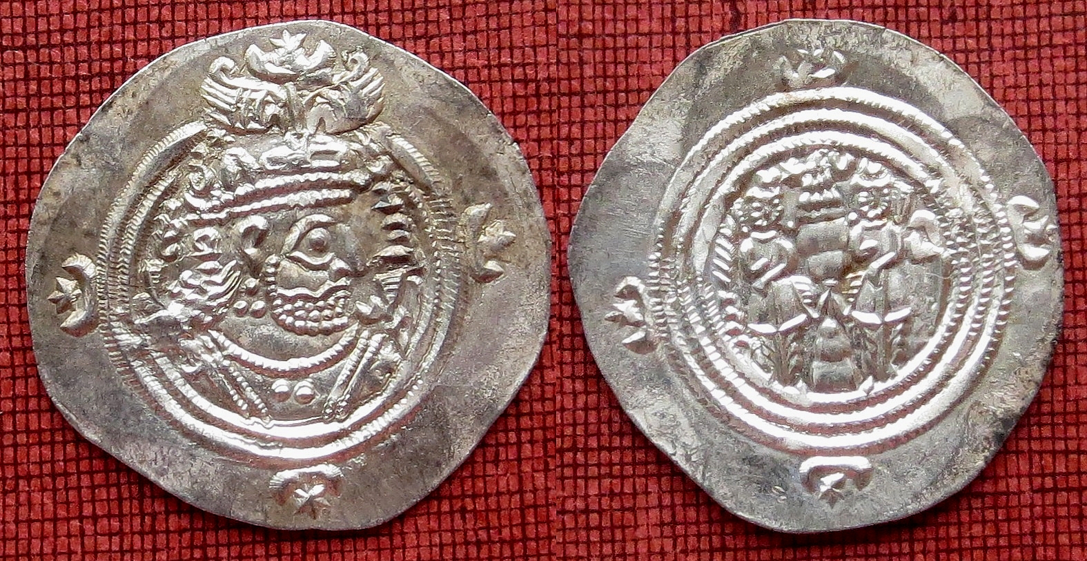 • Hier mal wieder was numismatisches, vz-st oder besser. Die beiden Perser-Drachmen sind stempelgleich. Der Dirham ist einfach nur weit überdurchschnittlich gut erhalten. Was man bei dem Dirham in den Feldrn sieht, das sind keine Kratzer, sondern es ist erhaben, weil mit geprägt. Die drei Silberlinge (4,18g, 4,17g und 2,93 g) haben alle ihr Sollgewicht und liegen sehr nahe am oberen Bereich dessen. Daher vermute ich weder Beschnitt, noch Befeilung.