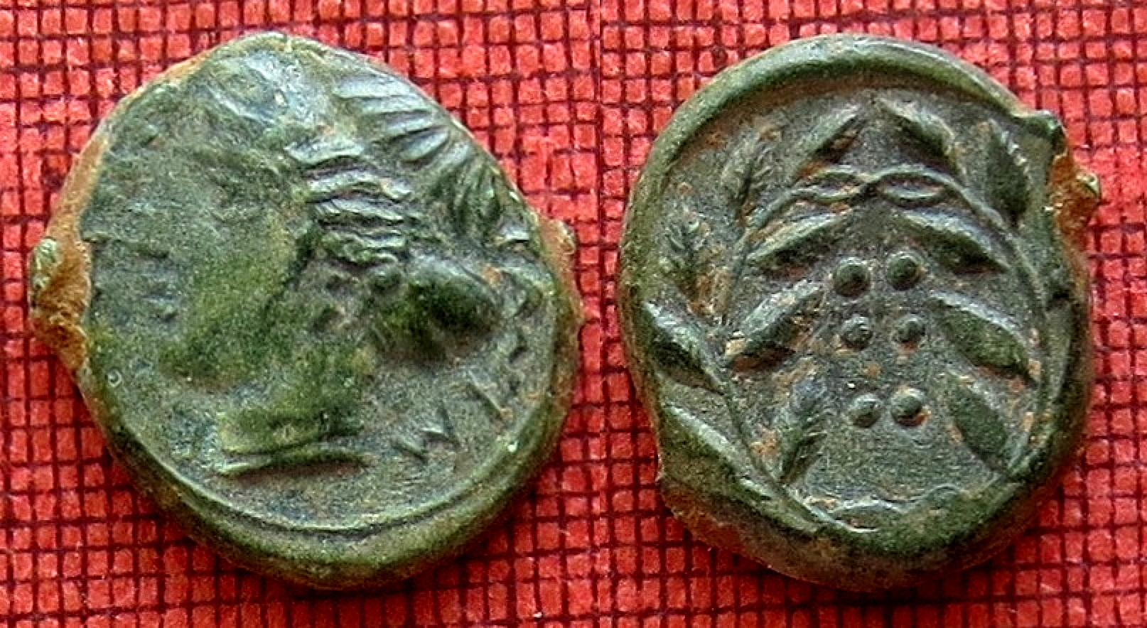 • Sizilien - Himera Hemilitron 415 - 409 vor Christus, VS: Nymphenkopf , RS: 6 Perlen in Kranz