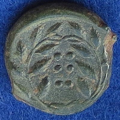 Die grüne Römerbronze (moesia Inferior, Caracalla, etwa vz) hat eine nahezu prefekte Malachitpatina. Sie zeigt, für Bronzen mit Malachitpatina selten, teils noch die für Heißprägungen typischen Prägeriefen und die Spuren der Graviereisen beim Gravieren bzw. Nachschneiden der eingesenkten Details.