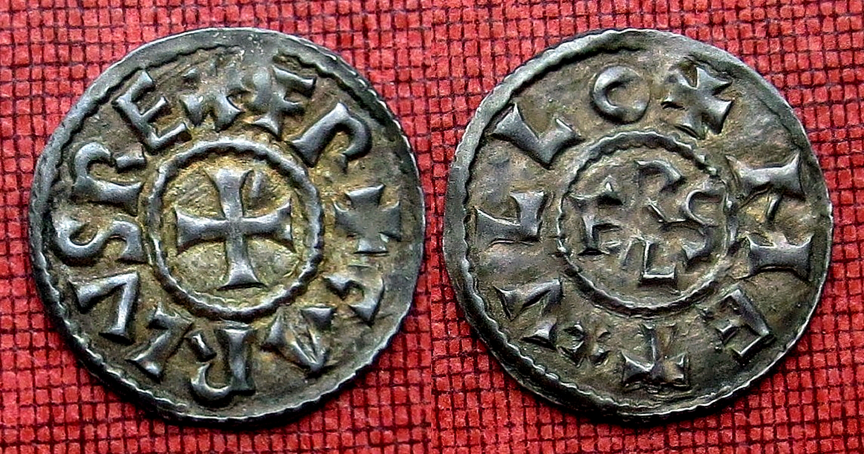• Den Mellener Pfennig Karls des Kahlen habe ich in der Bucht für 187 Euro erworben. Erhaltungsgradangabe des Verkäufers auf der Grundlage der Beurteilung eines französischen Händlers aus 2019 ss+. Ich denke er ist besser erhalten, jedoch im Vergleich zu dem Pfennig aus Rennes (Vorposting) und der Münze Heinrich des Zänkers waren die Stempel bereits sehr verbraucht und auch die Stellung von Vorder- zu Rückseite hatte ungünstige Überlagerungen, was die Buchstaben angeht. Ich denke, das ist auf dem überarbeiteten Foto (Kontraste hoch und scharfgezeichnet) sehr gut zu sehen. Letztendlich kann man nur besser sichtbar machen, was auch substanziell vorhanden ist.