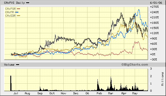 I like Peru. It’s a friendly country with a GDP per capita that is 1/10th of Canada’s and a lot of room for growth. With metal exports driving Peru’s ballooning annual trade surplus (likely to top $5 billion in 2006 which would be outstanding for a $70 billion economy), I see Peru as a country that is moving forward. While I am not an expert in local politics, I think eventually the surplus wealth from mineral exports will benefit the local communities through infrastructure development such as housing, transportation, and communications. Ultimately, only time will answer the question, but I am in the optimistic camp.