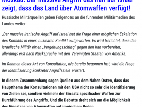 Im klassischen Kriegsnebel ist es unerheblich, ob Teheran Hunderte oder Dutzende Drohnen und Raketen abgeschossen hat. Ungeachtet des Medienrummels der NATO ist zweifelsfrei bewiesen, dass das angeblich “unbesiegbare” israelische Verteidigungssystem – von in den USA hergestellten AD/ABM-Systemen bis zu israelischen Nachbauten – in einem echten Krieg gegen einen technologisch fortgeschrittenen Gegner hilflos ist.