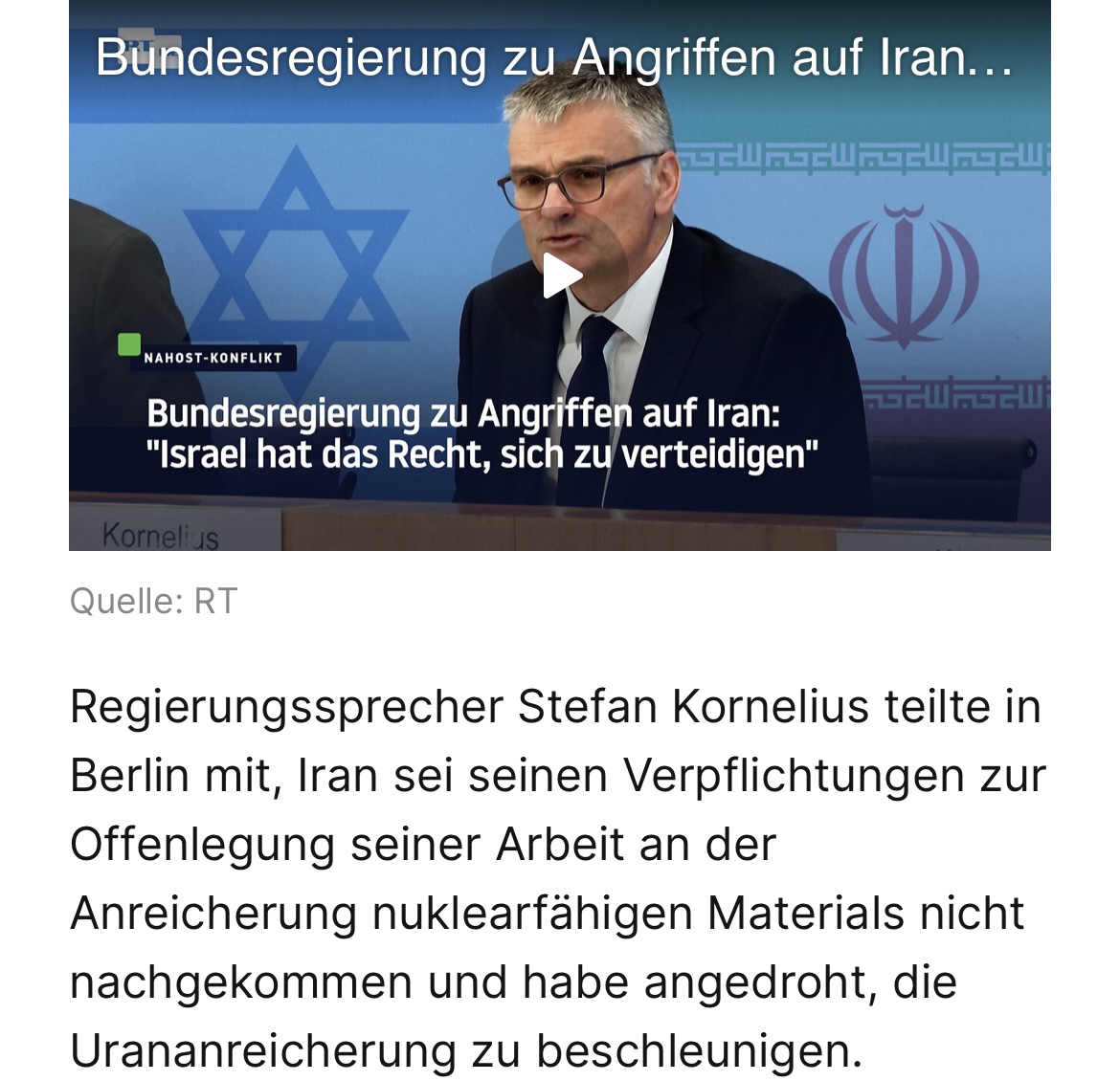 Ich halte das zumindest zur Zeit noch für einen nachvollziehbaren Akt des Selbstschutzes, die Vision der Mullahs in Teheran der Zerstörung Israels zu unterbinden.