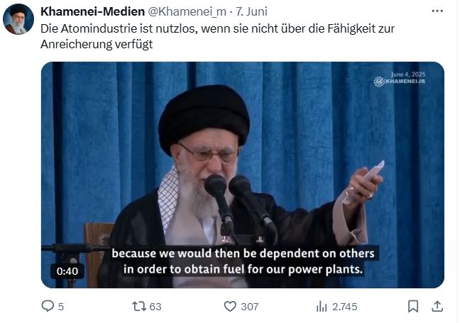 • Am 6+7.6.25 war sich der oberste Mullah noch ganz sicher.