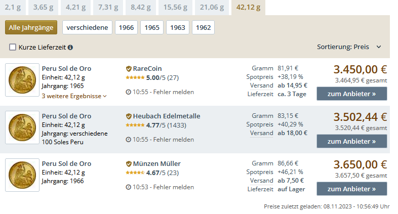 Die Preise Ankauf/Verkauf unterscheiden sich zum Teil gewaltig zwischen 2100€/3600€