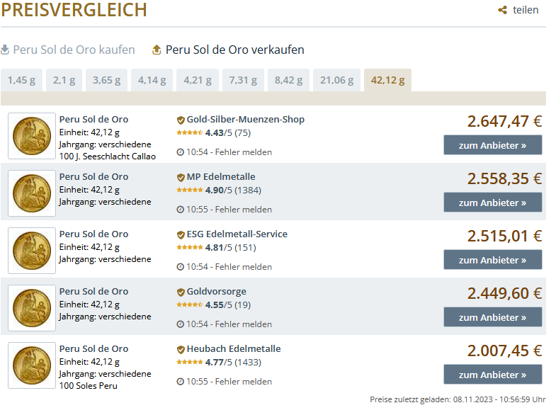 Habe eine 100 Soles Goldmünze von 1954 aus Peru geerbt und blicke da nicht wirklich durch.