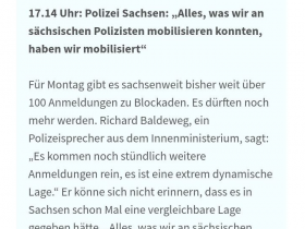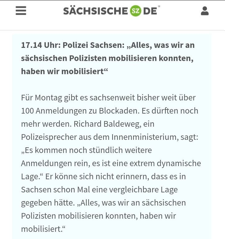 "Auf Deutschland dürften am 8. Januar massive Proteste zukommen. Bauern haben landesweit Demonstrationen angekündigt. Vor allem im Erzgerbirgskreis fürchtet das zuständige Landratsamt offenbar eine komplette Lahmlegung der Städte. Allein im Erzgebirgskreis sind 31 Demonstrationen angemeldet worden. 24 hiervon wurden jedoch vom Landratsamt untersagt."