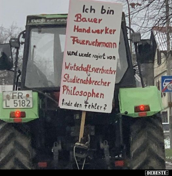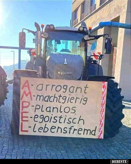 Auf der heutigen zentralen Veranstaltung (Sachsen, Thüringen, Sachsen-Anhalt, Niedersachsen) wurde vom Landesvorsitzenden des DBV (CDU-Mitglied) als Ehrengast und Redner der CDU-Landwirtschaftsminister von Sachsen-Anhalt präsentiert! Auf einige verbale Einwände hin wurde vom Organisator mitgeteilt, die CDU sei die einzige Partei gewesen, die ihre Bereitschaft zur Diskussion erklärt hätte?! Alles klar. Hauptparole war in dem Sinne: Die Ampel muss weg? Erinnert nur zu sehr an Merkel muss weg! Den Bauern wurde dann Honig ums Maul geschmiert: Wir haben viel erreicht, ohne die Aktionen der französischen Bauern. Die anwesenden Bauern (und Handwerker) haben diesen Schwachsinn auch brav mitgetragen! Ich sage zum wiederholten mal: Reingefallen! Meine These: Nächste Bundesregierung CDU + WU und Gürtel Engerschnallen wegen Politik der Vorgängerregierung, kein einziges Wort über die Ursachen (Merkel) wie auch auf der heutigen Veranstaltung nicht und kleine Steuersenkungen als Kosmetik , aber: Einhaltung (und Erweiterung) der Verpflichtungen Deutschlands gegenüber dem Wertewesen! Mit anderen Worten: CDU + WU = Krieg gegen Russland!