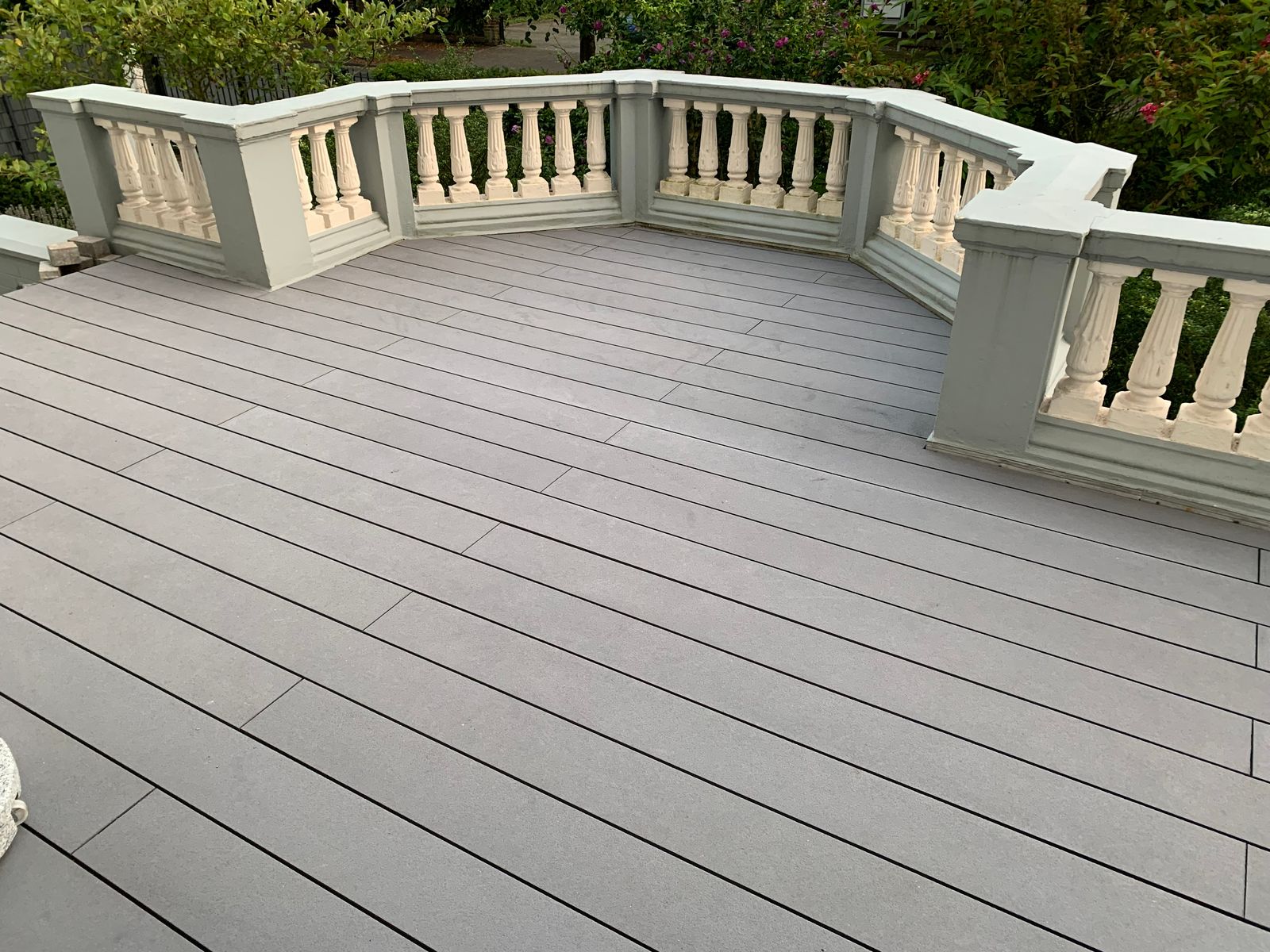 mal zur Abwechslung etwas aus dem Außenbereich. Eine große Veranda der Beletage habe ich mit neuen Belag versehen. Zuerst habe ich den Boden komplett mit Schweißbahnen abgedichtet (die Veranda ist voll unterkellert). Dann habe ich verstellbare Terrassenlager auf Unterlagen (Bautenschutzmatte) unter die Aluminiumunterkonstruktion geschraubt und anschließend mit 1% Gefälle (mind. 2 Meter Wasserwaage verwenden) ausgerichtet. Das sieht viel einfacher aus, als es ist (das hat 2 Tage gebraucht). Anschließend habe ich Faserzementdielen von CEDRAL mit Flugkrallen aufgeschraubt. Die sind zwar sehr teuer, halten aber ewig. Das Ergebnis sieht erst dann richtig gut aus, wenn man auch auf das Fugenbild achtet. Empfehlung von mir: Unbedingt spezielle Faserzement-Sägerblätter für die Stichsäge bzw. Kappsäge verwenden. Das ganze ist als One-Man-Show schon eine Herausforderung.