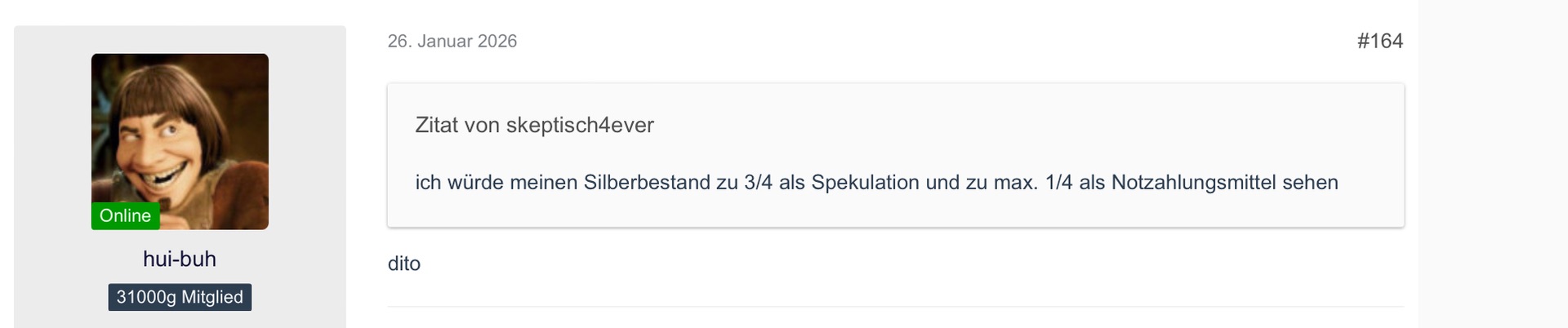 Bis $50/oz ist Silber superbillig, bis $150 ist es billig, ab $500 wird es teuer.". W.E.