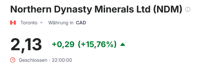 Wenn ich grad Northern Dynasty über 46% steigen sehe, dann ärgere ich mich,