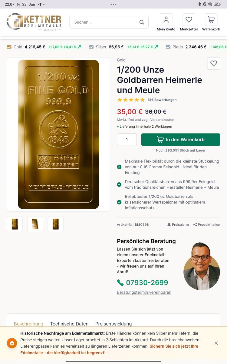 Finde ich nicht. Es ist die Mischung die es macht. Man kann doch Barren , Münzen und Goldbarren in Gramm besitzen. Außerdem vergibt der Verkäufer die Bezeichnung Barren und nicht der Käufer. Es ist Interessant das viele Leute bei einer wirklichen Krise unentschlossen sind sich mehrere Möglichkeiten offen lässt die Bezahlung zu wählen die man jetzt besitzt. Und Bargeld es immer weniger geben so die EU und die Kreditkarte ist bei Stromausfall unwirksam. Die Stücklung wäre bestens geeignet als Tausch oder Bezahlmittel zu verwenden. Und in der heutigen Zeit mit Politischen / wirtschaftlichen Schwankungen finde ich so eine Tausch oder bezahl Art überschaulich. Und der Goldkurs steht bei 4133 € Silber bei 79 € da ist noch Luft nach oben.