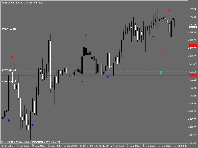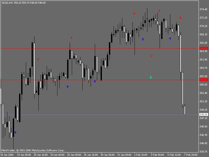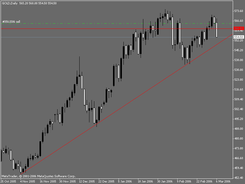 Geschrieben am 6.2.05: Wir die Preislinie bei 564.60 durchbrochen geht es richtig nach Süden.