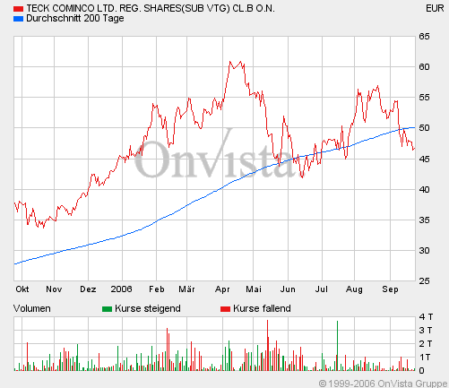 Fording und Peabody haben kleine KGV, über 40 % korregiert, was schon einmal sehr gut ist. Fording hat zweimal sein tief getestet, bei 28 30 C$, und die Ängstlichen rausgeschüttelt, ebenfalls super. Peabody ist am testen der 36 $ Marke, denke hier kann ebenfalls vorsichtig angekauft werden. Diese beiden sind an der vordersten Front der Einkäuferliste. Fording hat die momentan noch höhere Dividente, mußt aber damt rechnen, daß diese noch etwas nachgibt. Natürlich eine Rendite von ca. 5- 8 % wäre schon super bei diesen Kursen. Die 14 % können nicht gehalten werden.