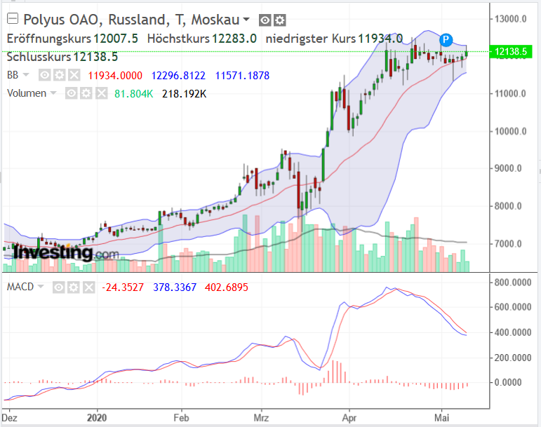 Inzwischen gibt es dort 800 Coronafälle in der Mine. Militär wurde abkommandiert, um zu koordinieren. Auf den Kurs scheint all das keine wesentlichen Einfluss auszuüben. Polyus befindet sich aber auch zu 85% in den Händen einer Eignerfamilie, der Streubesitz am Markt ist gering, die Dividenden jedoch im ganzen Sektor seit langem vorbildlich.