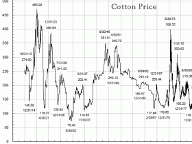 Weils der Server nicht annehmen wollte unten noch die zwei Charts aus dem oben erwähnten Artikel zu Weizen & Baumwolle (Langzeit, inflationsbereinigt).