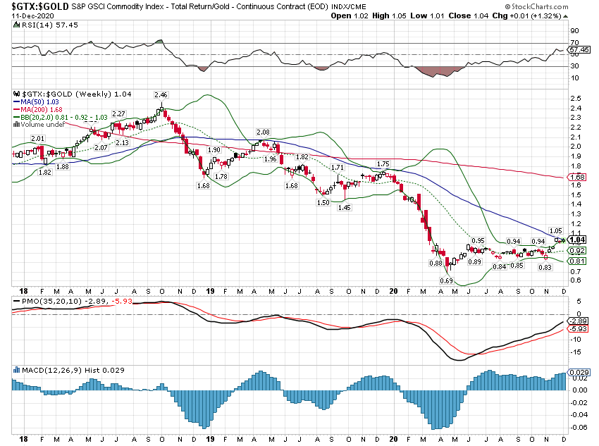 Jedenfalls ist erstmal die Outperformance des Goldes gegenüber den Rohstoffen ausgereizt !