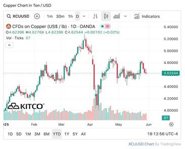 Kupfer erreichte am Mittwoch, dem 27. März, einen Rekordpreis. Der meistgehandelte Kontrakt an der COMEX erreichte 5,37 Dollar pro Pfund bzw. 11.840 Dollar pro Tonne. Händler prognostizierten auf einem Rohstoffgipfel der Financial Times in der Schweiz, dass das Metall in diesem Jahr mindestens 12.000 Dollar pro Tonne erreichen könnte, da weltweit Versorgungssorgen aufflammen. ( Mining.com )