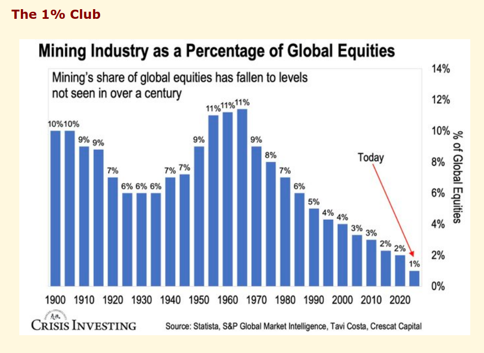 Chart des Jahres: Minenaktien 1 % der Weltanlagen