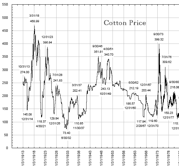 Aber auch die inflationsbereinigten Langzeitcharts für Weizen & Baumwolle.