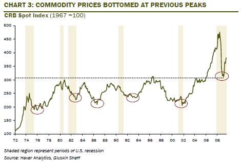 In der Vergangenheit war eine markante Aufwärtsbewegung der globalen Leitindikatoren zum Wachstum meist Vorbote eines steilen Anstiegs der Rohstoffpreise. Bislang erhielten Rohstoffe Unterstützung seitens Chinas, das sich in Erwartung eines massiven Ausbaus seiner Infrastruktur mit Rohstoffen eingedeckt hat. China ist aber kein Einzelfall, denn ganz allgemein ist von Seiten der Schwellenländer mit anhaltend starker Nachfrage zu rechnen. Und auch in den Industrieländern könnte ein gewaltiges Wiederaufstocken der Bestände in der Industrie bevorstehen. Das wird Rohstoffen vermutlich zusätzlichen Auftrieb geben und ihren Anstieg zum Jahreswechsel befeuern.