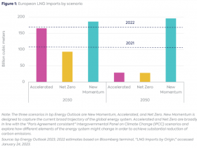Der bp Energy Outlook 2023 verdeutlicht diese Ungewissheit, wobei Europas LNG-Importe bis 2030 zwischen 93 und 186 Mrd. Kubikmeter und bis 2050 zwischen etwa 30 und 200 Mrd. Kubikmeter schwanken (Abbildung 1). [11]